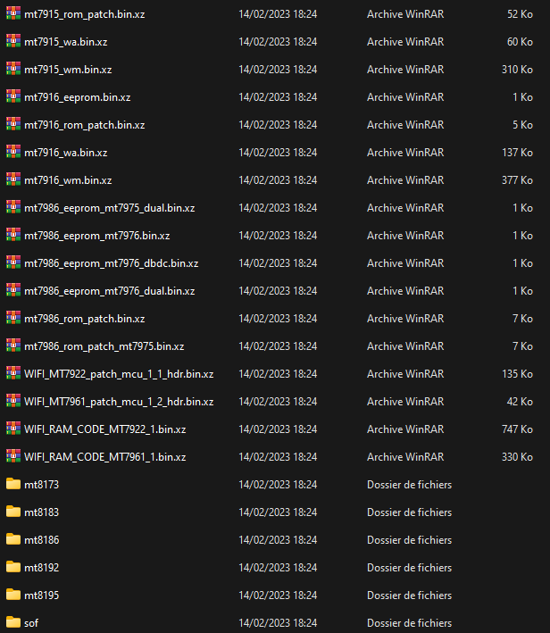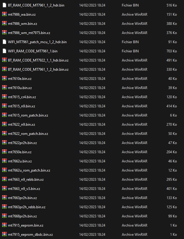 I found a zip archive on a website that I forgot and no longer have. But I still have all the files as on the screenshot and I put a link on my website https://download.killianferrier.fr/mediatek.zip if you want. I put all the files on a USB key and after installing Kali Linux through network detection, I put my USB key on my computer and I copied the mediatek folder into the firmware files /lib/firmware/. But there are still mistakes when I want to install the amdgpu package. I created a web page to explain how to solve the problem but it is in frensh. The link: https://linux.killianferrier.fr in "Kali installation Asus Vivobook". |