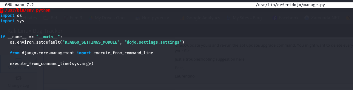 File "/usr/lib/defectdojo/manage.py", line 11, in <module>