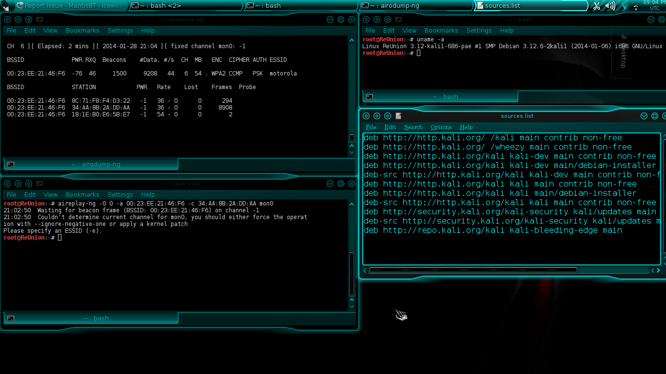 | Summary | 0001000: channel -1 error in in aircrack-ng suite on upgrade to kernel 3.12-kali1-686-pae | ||||