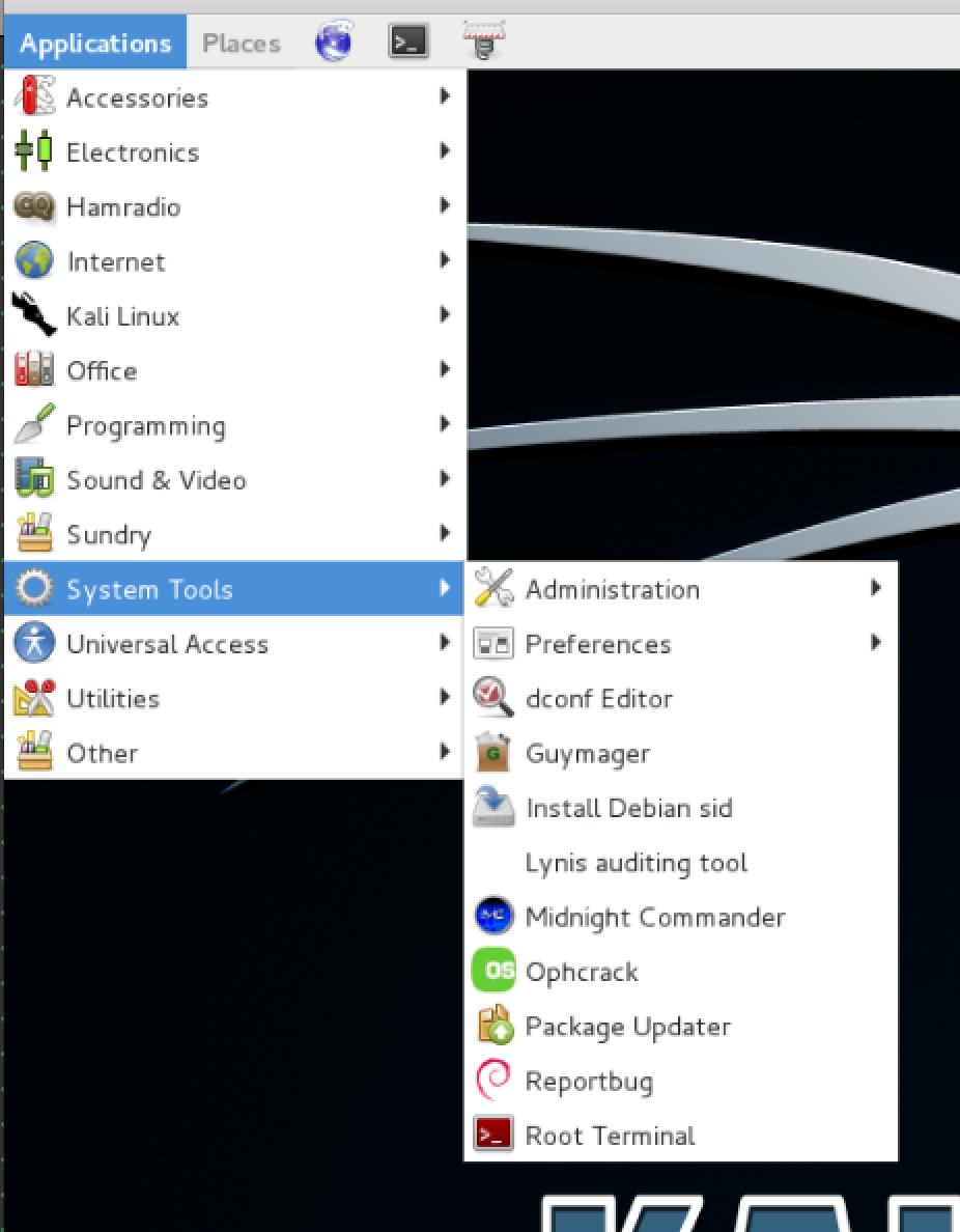 | Description | Under System Tools in the menu, the shortcut to the installer has 'Install Debian sid' instead of 'Install Kali Linux'. Screenshot attached. | ||||