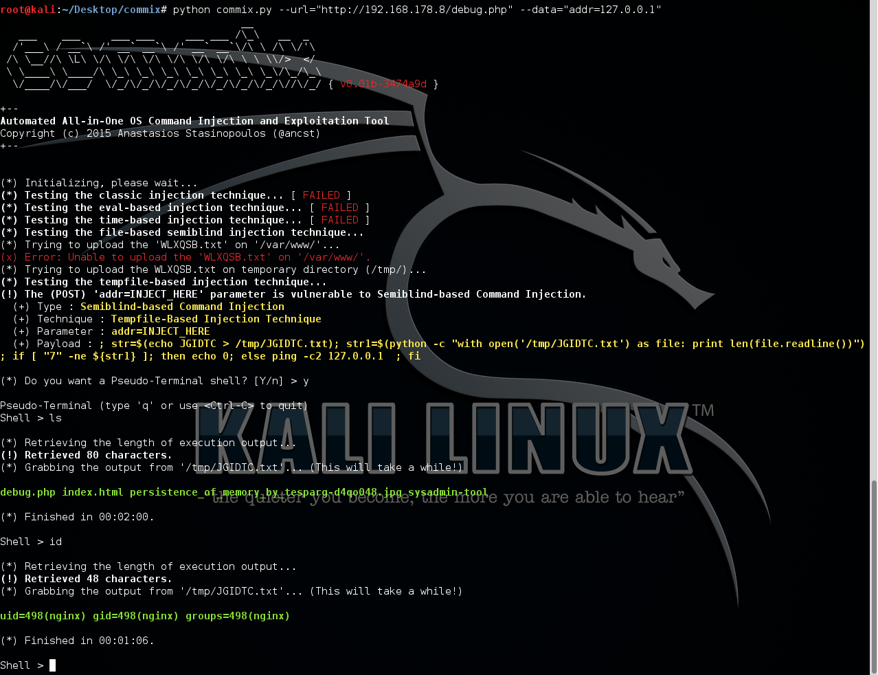 | Summary | 0002201: commix - command injection and exploitation tool | ||||