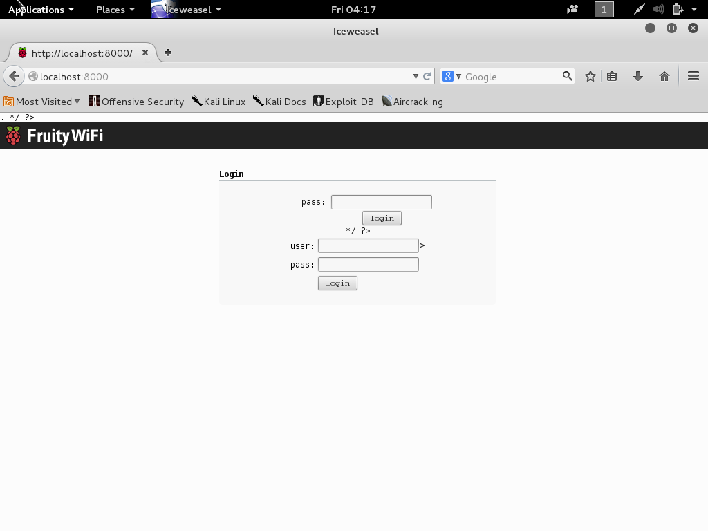 Summary0002386: can't login to fruitywifi