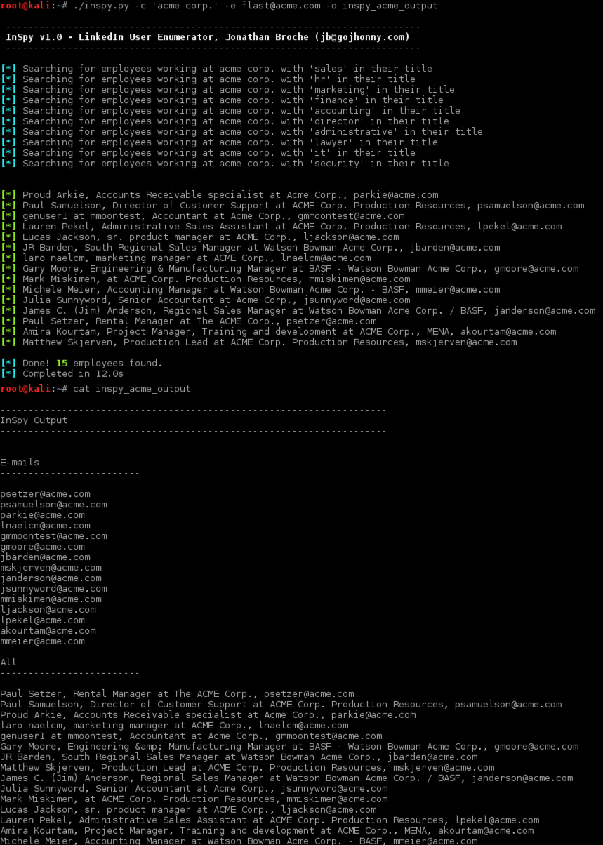 | Summary | 0002395: Add InSpy v2.0.2 - A LinkedIn enumeration tool | ||||