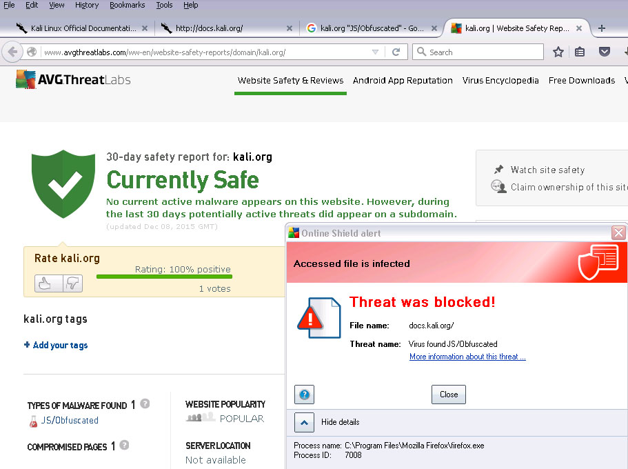 | Description | FYI: avg reports a virus on website docs.kali.org: | ||||