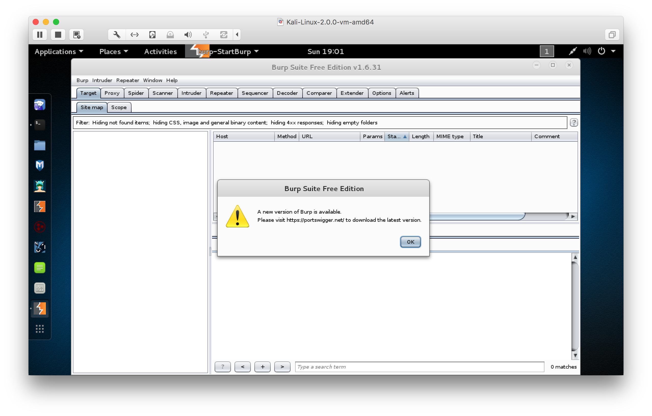 | Summary | 0002954: Burp Suite is currently out of date (1.6.31 currently / 1.6.32 latest) | ||||
