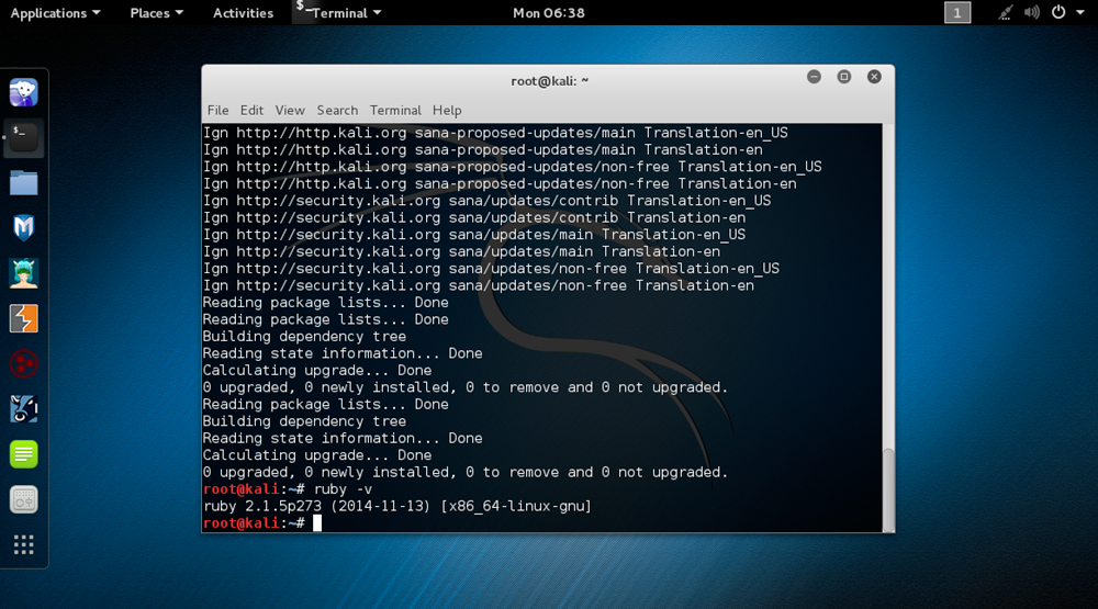 | Description | Ruby, on a fully upgraded Kali 2.0 machine, is currently 2.1.5p273. The latest available is 2.24. Upgrading Ruby to 2.2.4 comes with the following benefits: