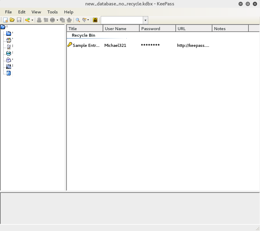 Hello, Sorry this is so long. Just trying to provide as much information as possible. So the testing we performed with keepass2 version 2.28 was performed on the Lenovo laptop, which allowed us to draw the potential conclusion that this was not an issue with the 2.28 version of the keepass2 package. However, after further testing, that conclusion might not be entirely accurate. When we perform this test using the 2.28 version of the keepass2 package on the HP laptop that we were originally performing the testing on, as demonstrated in 'Selection_001.png' the issue still persists. For what it's worth, this follow on testing was performed by initially, as the root user, purging the current keepass2 package from the system (apt-get remove --purge keepass2), validating that it was removed (some components were left behind such as icons), and installing the 2.28 version manually from 'https://packages.debian.org/source/stable/keepass2'. We then logged out of the profile and logged into a profile that had not logged into the system (e.g., fresh /etc/skel with fresh profile) and reproduced the issue with version 2.28. This leads us to believe that or original proposal was incorrect, leaving us to believe that something is messed up with this particular configuration or information system. Oddly enough, in both instances, we nuked and paved each information system with Kali 2016.1. We will work to conduct additional testing to troubleshoot this issue further, but this does not appear to be so cut and dry. To further assist with this issue, if so desired, I am willing to upload an impacted database created using version 2.28 of keepass2 after reproducing the issue, as well as an impacted database using version 2.31 of keepass2, naming them accordingly. To further troubleshoot this issue, on another Lenovo laptop with the same hardware profile, simply with a fresh Kali 2016.1 install, we only installed keepass2 using 'apt-get install keepass2' and attempted to reproduce this issue as the 'root' user, and we can reproduce this issue where the application appears to crash and present a red 'x' in the left window. We then purged the 2.31 version of keepass2 using 'apt-get remove --purge keepass2' from the system and, while the sha1sum of both repo packages are the same, manually installed the older version from the Kali pool (http://http.kali.org/kali/pool/main/k/keepass2/keepass2_2.28+dfsg-1_all.deb). This time we were able to reproduce the issue. One thing that we do know is that while exploring other options, we did install similar packages such as keepassx on the previous Lenovo laptop. Part of that effort involved installing 'mono-complete' so on the new Lenovo laptop we purged the keepass2 package, installed mono-complete on the same Lenovo laptop, reinstalled keepass2 from the kali repo, and attempted to reproduce the issue again, finding that it does crash as described. We then manually installed keepass2 version 2.28 from the Kali pool on the Lenovo laptop and attempted to reproduce the issue again, and it still crashes. From what we can tell, the one consistent piece of this involves the 'Recycle Bin', which does not appear to be present when we create a database. Given such facts, we went back to our old Kali 2 workstations and observed a few things:
