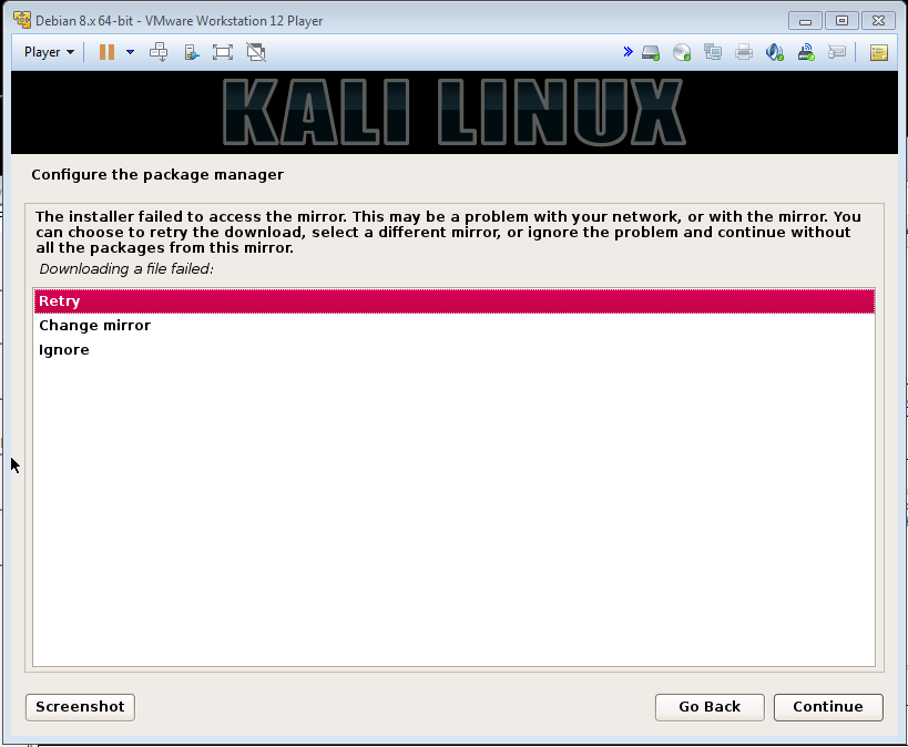 | Description | I started my installation on Vmware workstation 12 I went through the setup without a problem but when I got to the "Configure the package manager" page | ||||