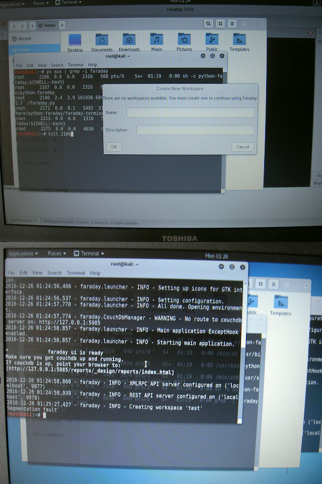 | Summary | 0003805: Faraday freezed when WS name setting popup cancel, cause for segfault when named "test".(Kali Live 2016.2) | ||||