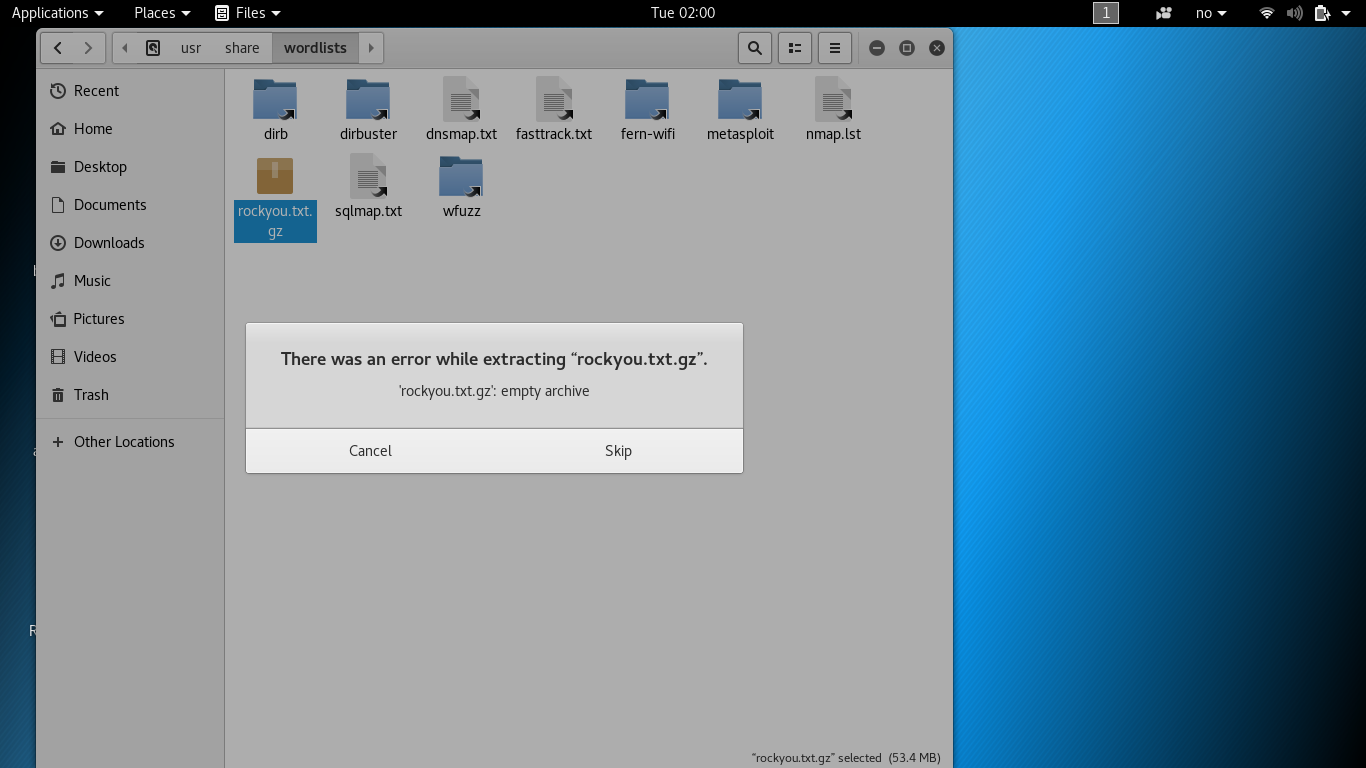 | Description | one of my favorites, the rockyou.txt.gz under /usr/share/wordlists is empty infact.. here it is @ https://github.com/praetorian-inc/Hob0Rules/blob/master/wordlists/rockyou.txt.gz?raw=true | ||||