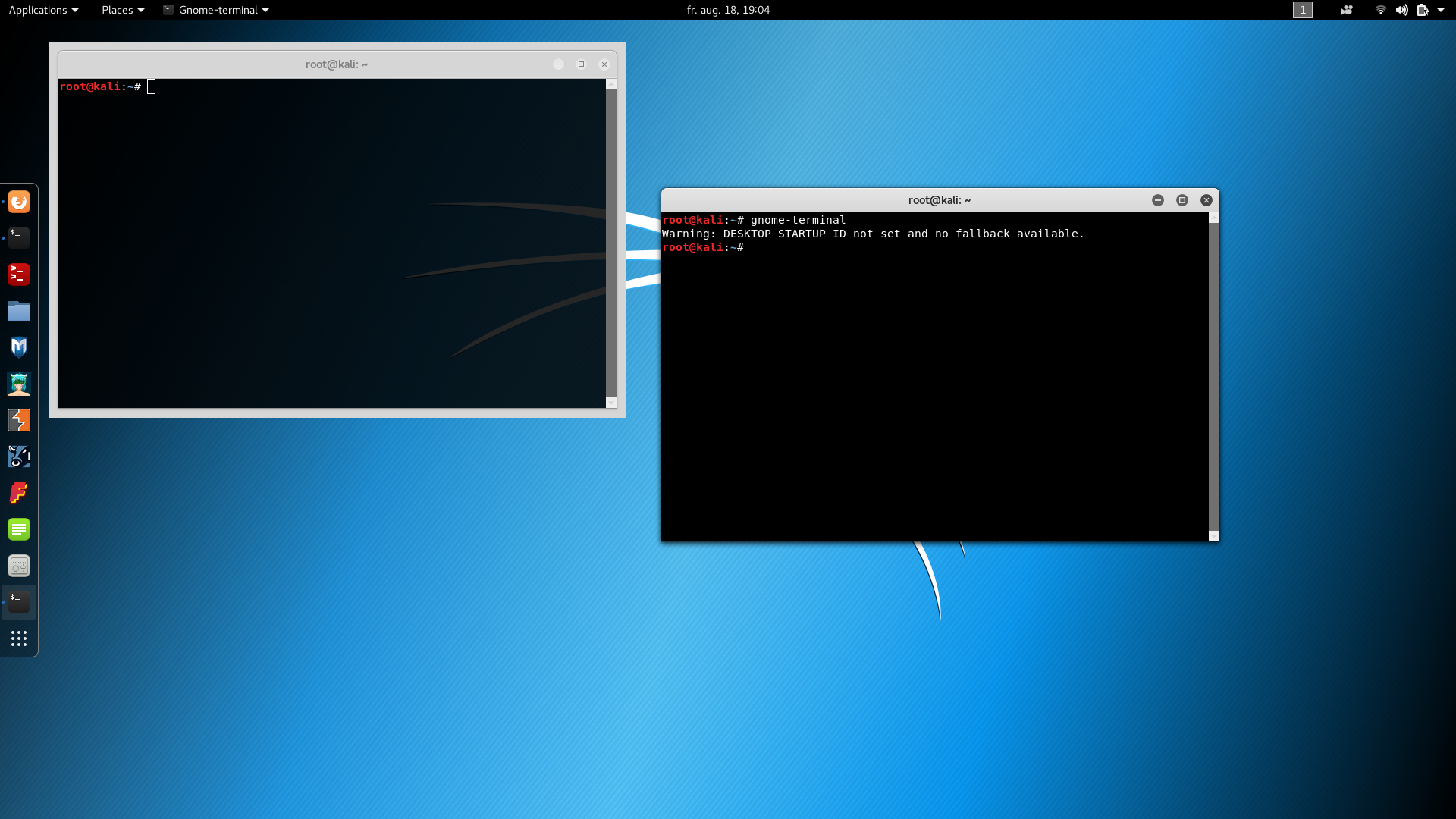| Description | Suddenly my gnome-terminal got a bug that shows a sill around the terminal. When I enter the desktop at boot the terminal on the left shows the same picture with the sill as when I open it. If I open a terminal through right-clicking on the Desktop I get a gnome terminal that works normal, and when I type "gnome-terminal" in it, I get an error message saying: Warning: DESKTOP_STARTUP_ID not set and no fallback available. I have tried to remove the gnome-terminal and install it again, but it has no different effect. I don't got a clue on how to fix it. I'm using the amd64 ISO as a main OS, it is fully updated with apt-get update, upgrade and dist-upgrade. | ||||