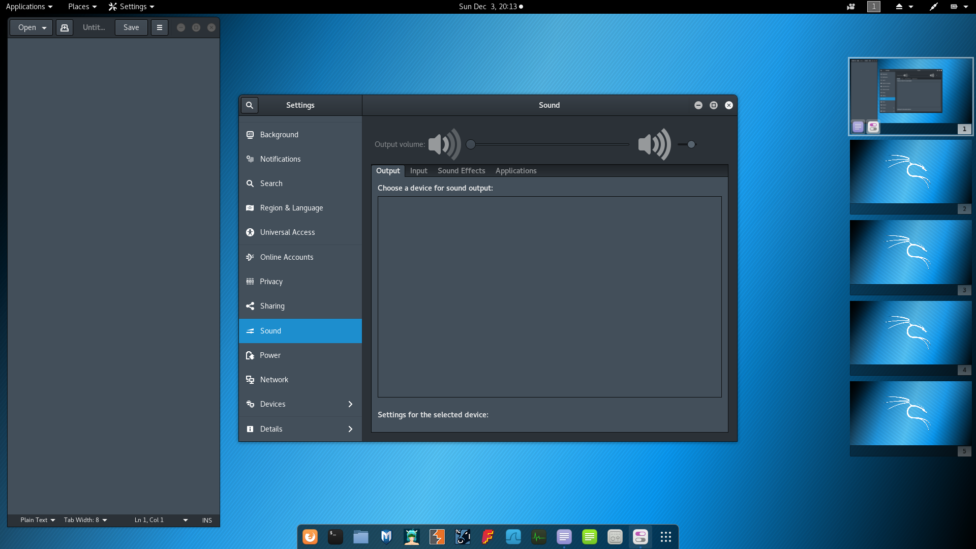 Okay, defaults ('kali-default version 2017.3.3') were implemented following update. ...sound functions have returned, seemingly. Thanks for the update. |