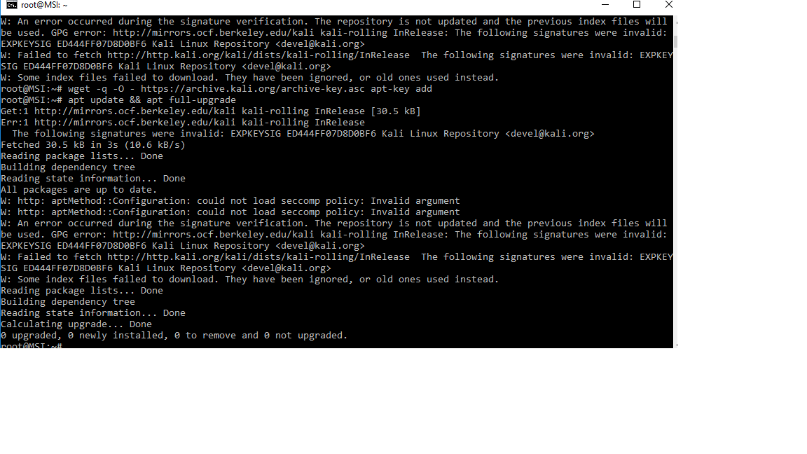 | Summary | 0004537: Error in upgrading Kali to run on Windows | ||||