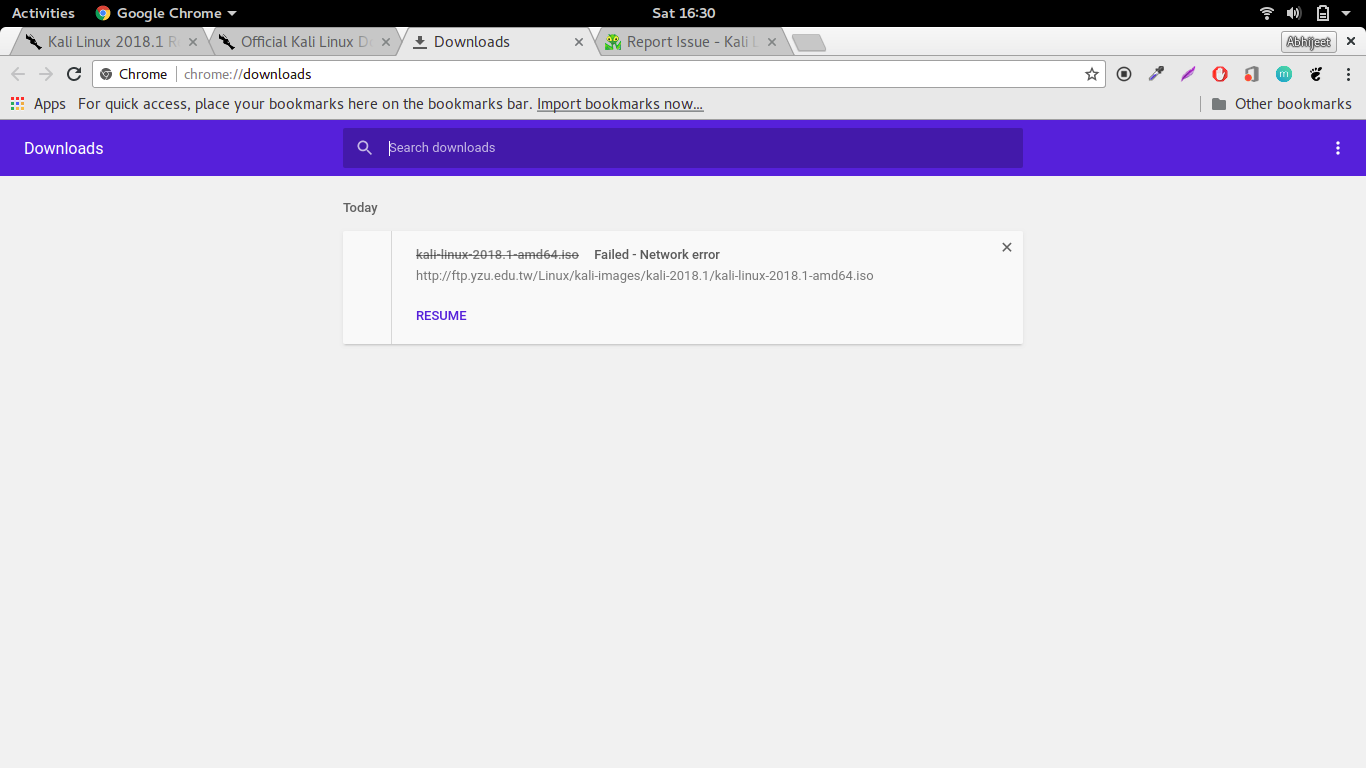 | Description | Hello Everyone, I'm a self-learner programmer. I'm learning things my own. No one is here with me to tell me the resources. But I'm trying my best to learn things. I want to get into the domain of web security, and ethical hacking. I'm using Linux distros since 1 month. Now it's the time to install Kali Linux to my machine. I went to the download page and click on 'Kali Linux 64 Bit'. I use HTTP method to download the ISO file. My internet connection is 50Mbps. And while downloading it giving me the speed of just 20-30kbps. Its quite low. I think this is a server issue. After sometime it gave me the error - 'Network Error'. I tried this almost 10-15 times and same thing happen again and again. I'm adding screenshot so you can verify. Screenshots - 1[https://prntscr.com/ip98uh] | ||||