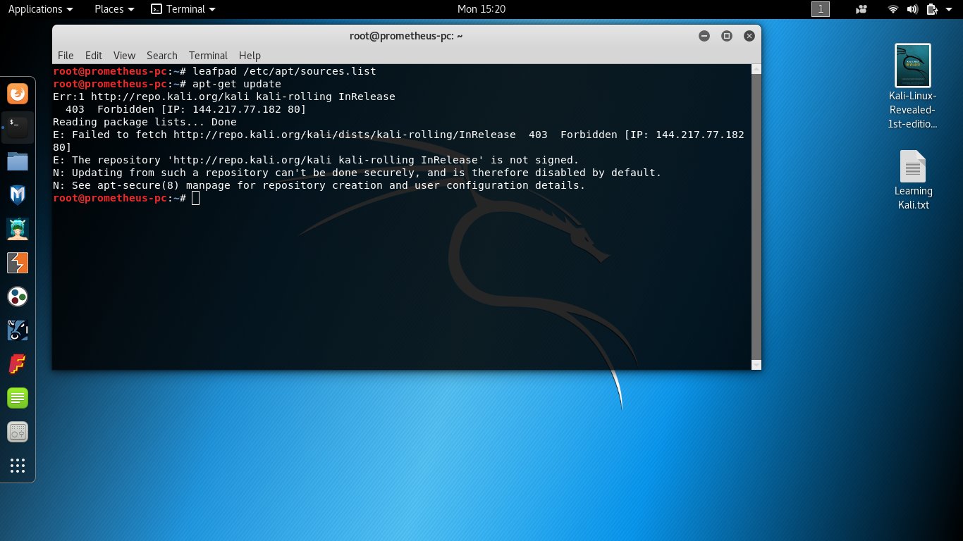 @Prometheus88, this is a bug tracker, not a support form. Please learn the difference between the two before posting any more tickets here. You are invited to read https://kali.training/lessons/6-getting-help/ for more information. |