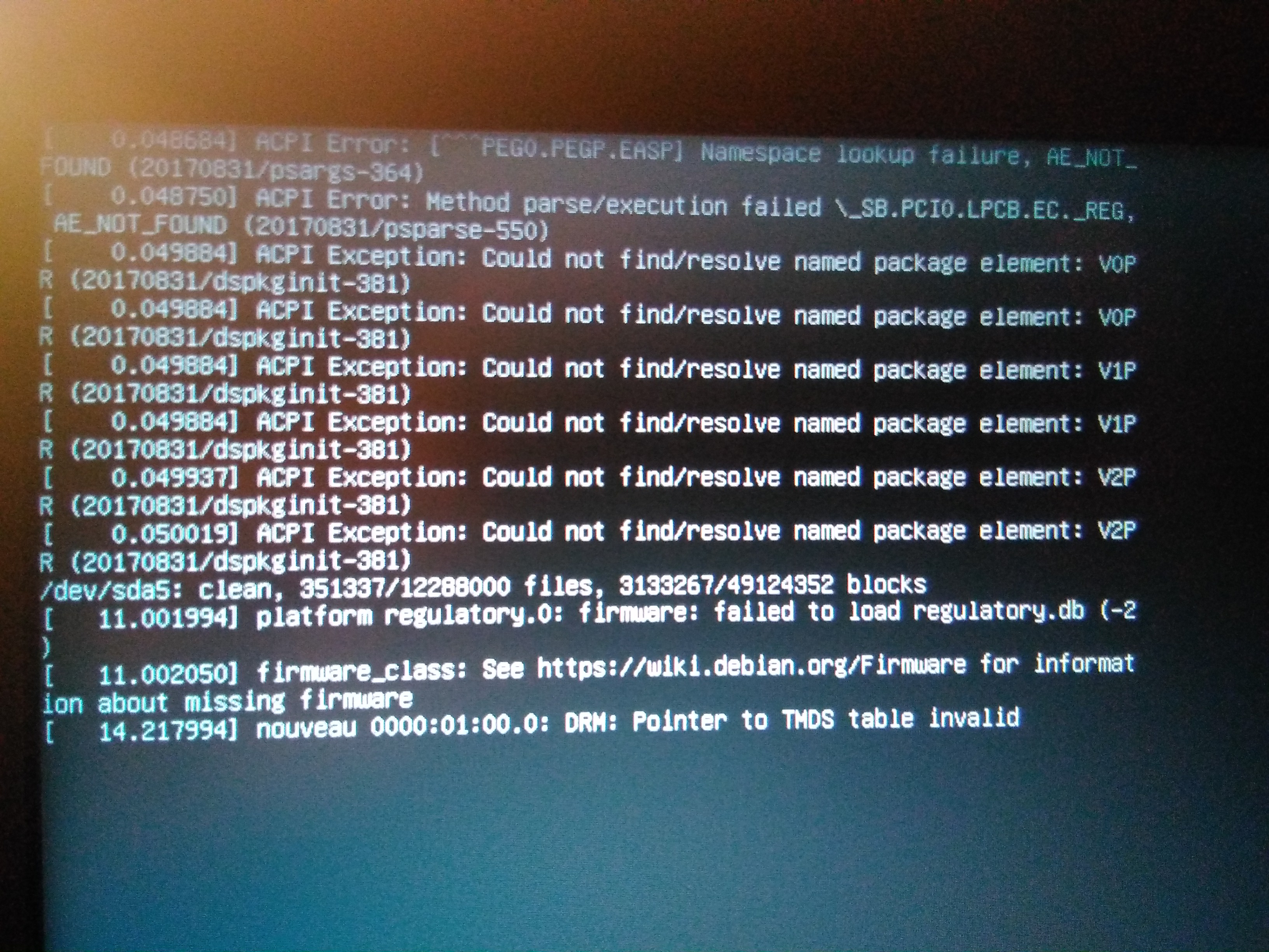 | 2018-09-12 07:07 | g0tmi1k | Summary | Error after installation Kali => Error after installation Kali (firmware regulatory.db, nvidia Graphic card) |