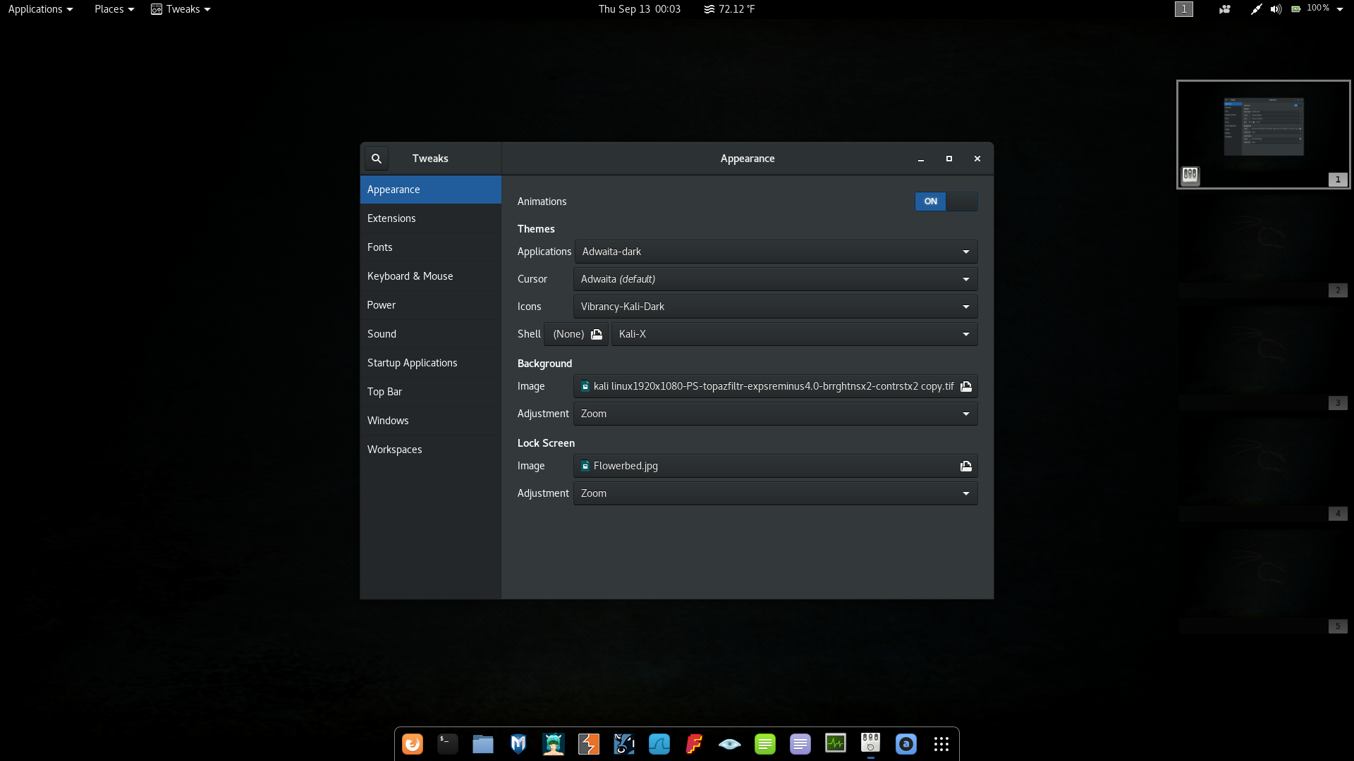 | Description | I did a fresh install of Kali 2018.3 and then proceeded to update it with apt-get update && apt-get dist-upgrade and noticed after rebooting, my desktop icons were gone and I was unable to left-click and drag my mouse on the background to create a selection box. This happened with both the VMware image, as well as the .ISO install. I noticed that it only happened after the upgrade. Starting a fresh 2018.3 installation without updating will have the icons and the ability to create a selection box by dragging the mouse pointer. Side note: Gnome Tweak Tools also doesn't have a "Desktop" tab, which it should. I attached a screenshot for easier visualization. | ||||