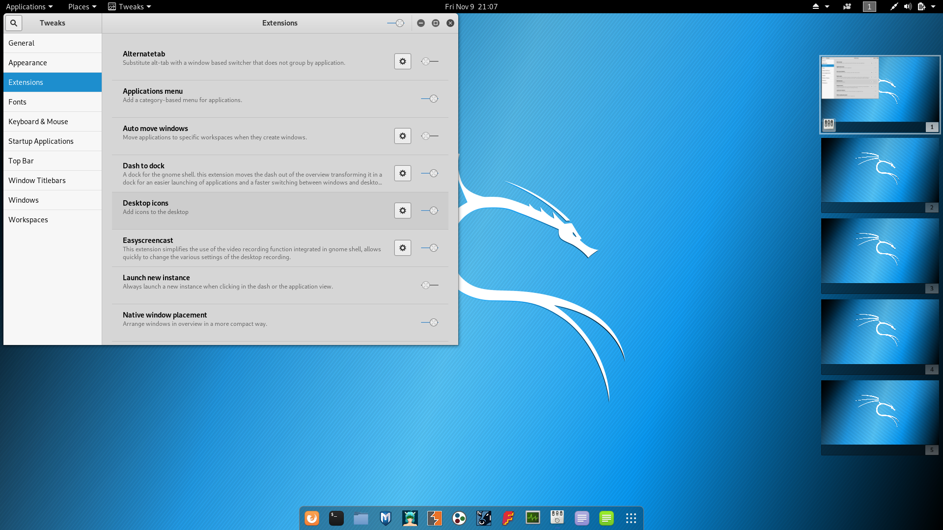the package gnome-shell-extension-desktop-icons is now available in kali |
