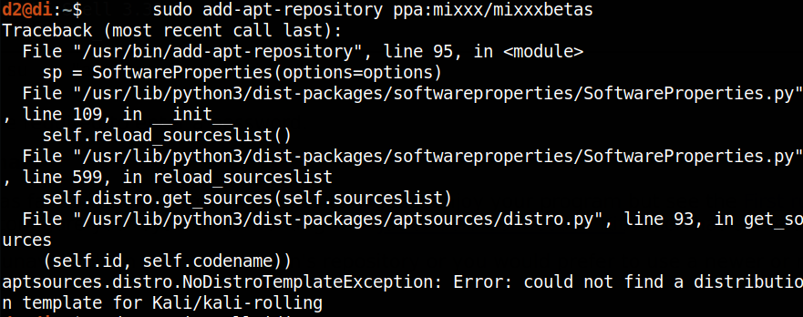 | Summary | 0005058: Traceback error when trying to 'sudo add-apt-repository' | ||||
