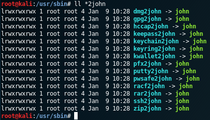 | Description | With the latest kali upgrade, all *2john tools (zip2john, keepass2john, etc.) have been replaced with a symlink to the john binary and the original tools can no longer be used. Expected behavior: Actual behavior: root@kali:~# uname -a | ||||