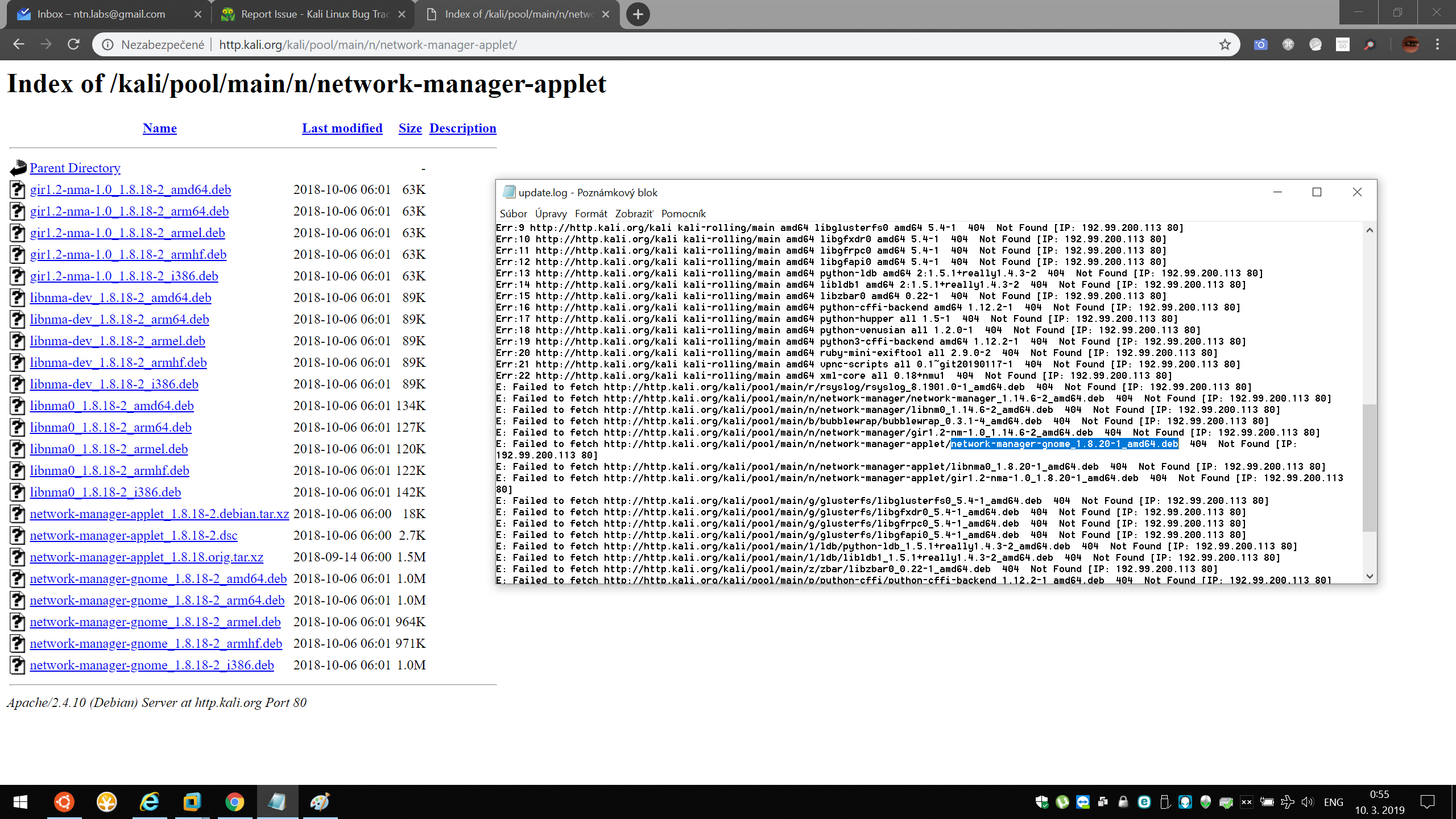| Description | apt update and apt upgrade says failed to fetch packages. When I open the link I can see the folder and the package that apt is looking for is missing. maybe just update db got screwed? Attaching files, maybe it's just a glitch... | ||||