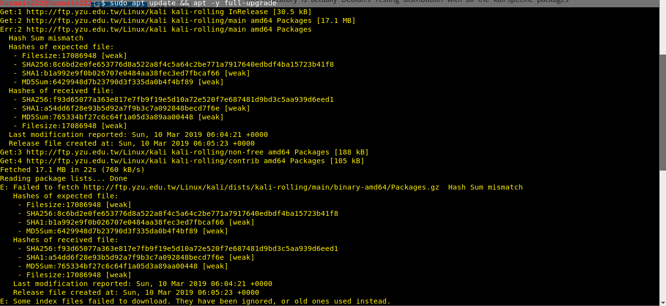 | Summary | 0005306: After New installation of Kali Linux Rolling 2019.1, I can't update at all | ||||