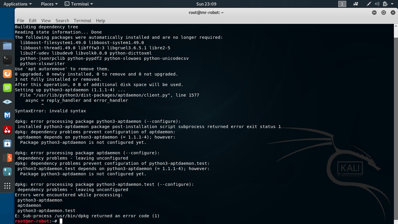 | Steps To Reproduce | sudo apt-get -f install sudo dpkg --configure python3-aptdaemon | ||||