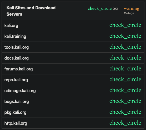 | Summary | 0005690: Kali.org status page shows "check_circle" text instead of an icon on Firefox | ||||