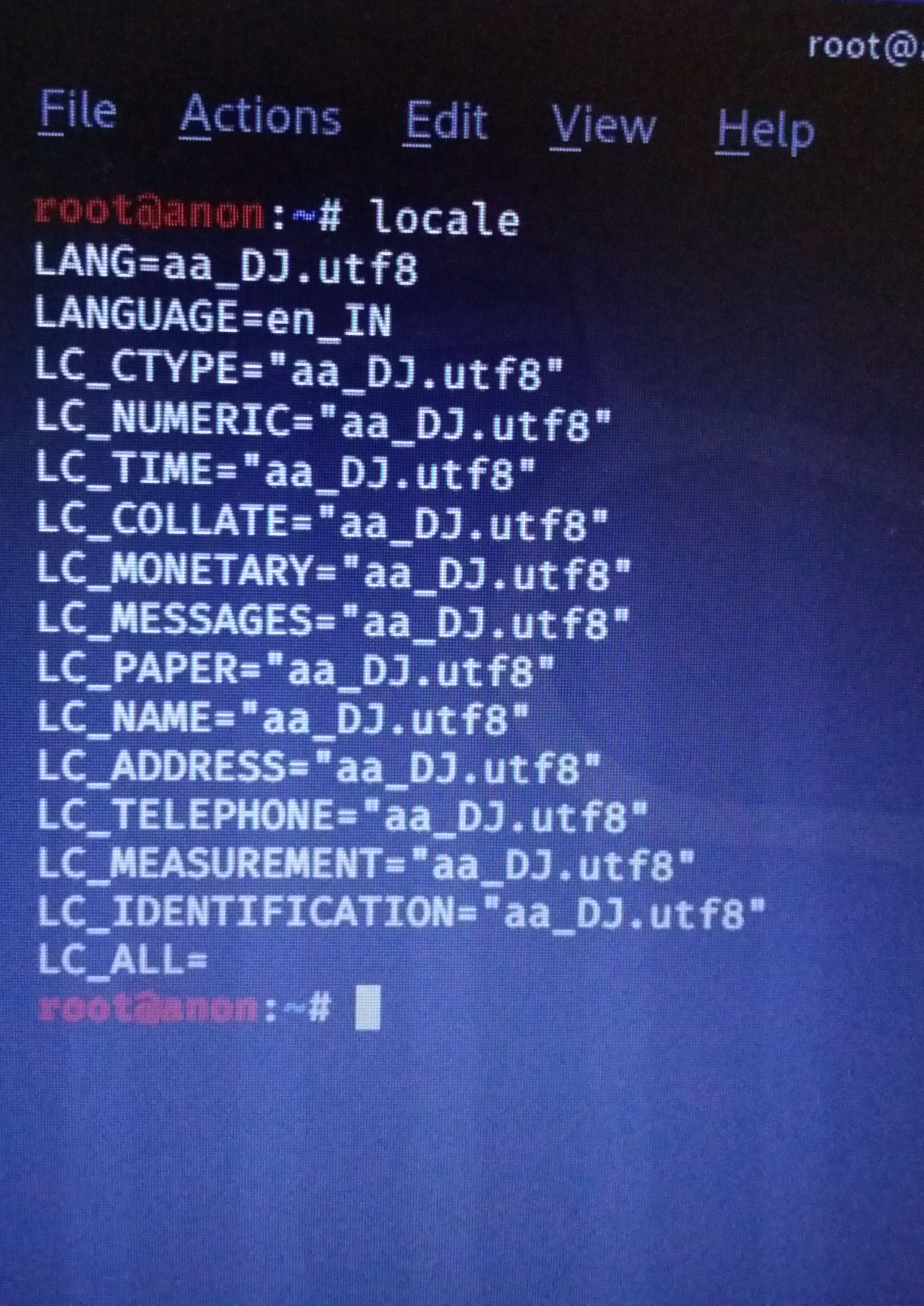 | Summary | 0005844: Locale is automatically set to aa_DJ.utf8 | ||||