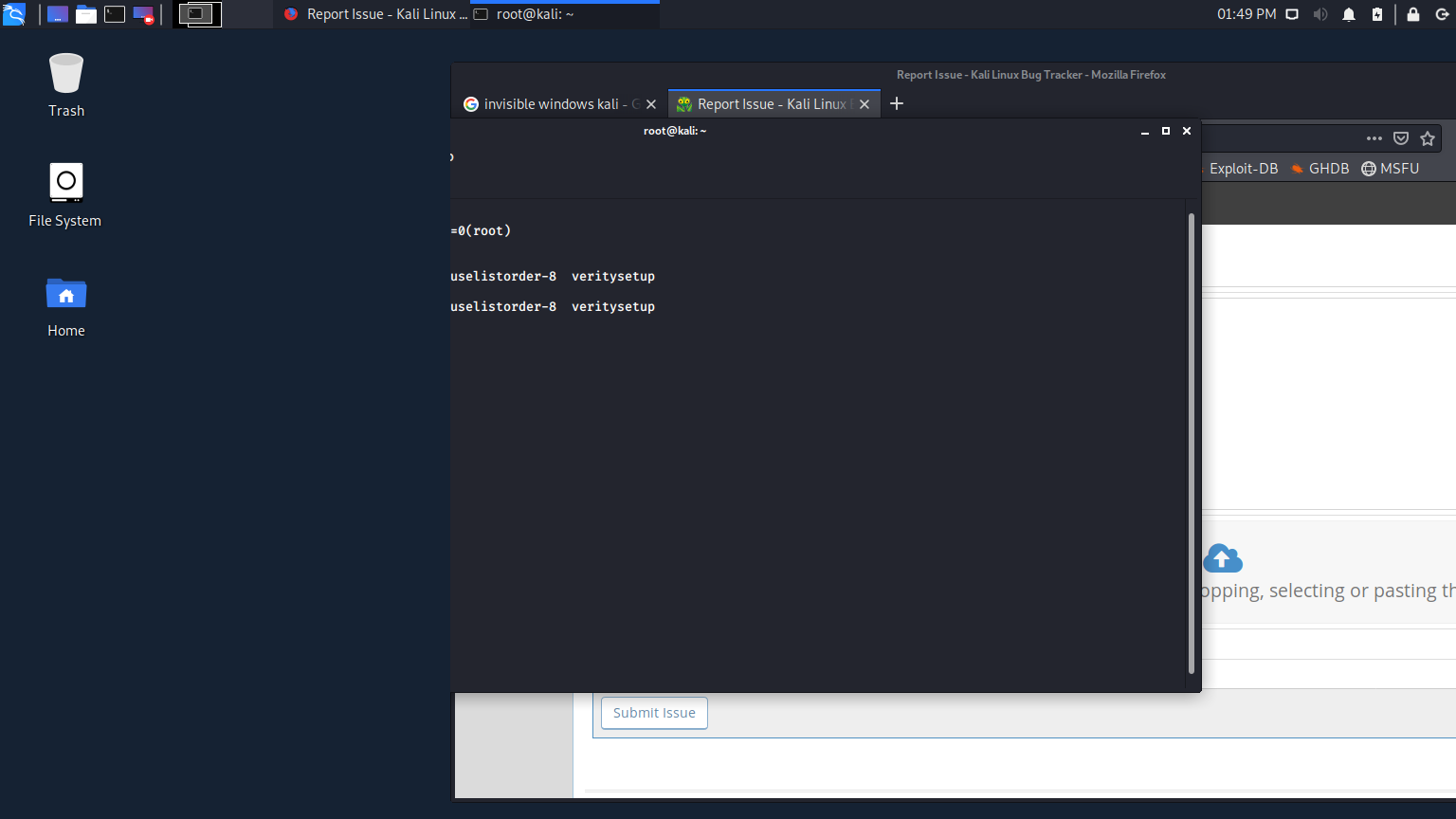 | 0005876 | Kali Linux | General Bug | public | 2019-12-05 18:51 | 2020-01-14 08:36 |