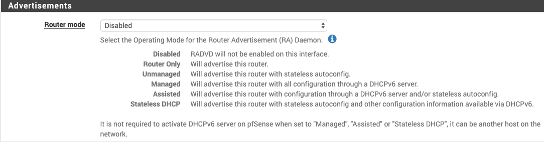 | Steps To Reproduce | Set up PFSense and ensure router advertisements are enabled for DHCPv6 | ||||