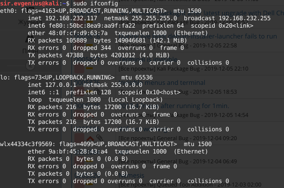 my railink adapter now showing wlx000762cfe instead of wlan1 after upgrading to kali 2019.4 though i renamed it back to wlan1 using this command "ip link set wlx000762cfe name wlan1" and wifi started working again. |