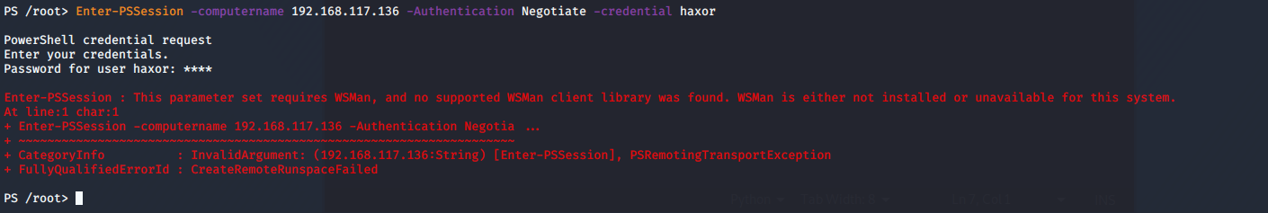 | Description | I was doing some testing with Powershell on Kali Linux and I was trying to obtain a PSSession to a Windows. During my testing I was unable to get a session because Powershell stated I needed wsman and the client Library could not be found. Turns out the kali system was missing some subpackages and symlinks to get PSSession to work properly to obtain a session from a Windows Client. | ||||