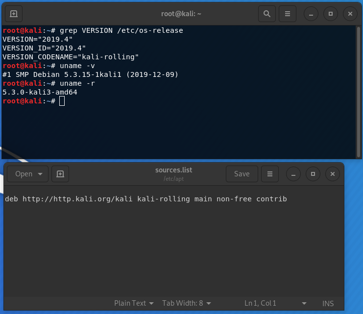 | Steps To Reproduce | Torrented stable kali large 2019.4 iso from official website, had correct checksum. Made a kali live USB on tails using the "dd" terminal command. Booted into kali live usb and installed kali distro on internal SSD. Ran "apt-get dist-upgrade -Vy" and rebooted. Checked verision number using uname -v and -r, and it returned a version number of Kali that doesn't seem to exist publicly anywhere. | ||||