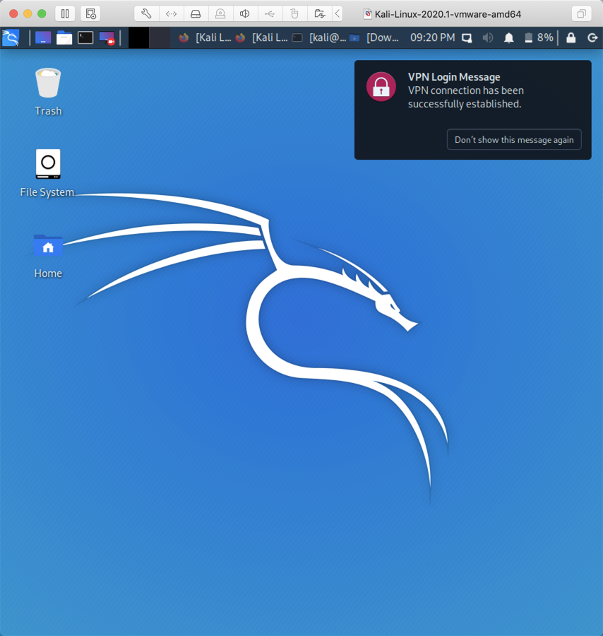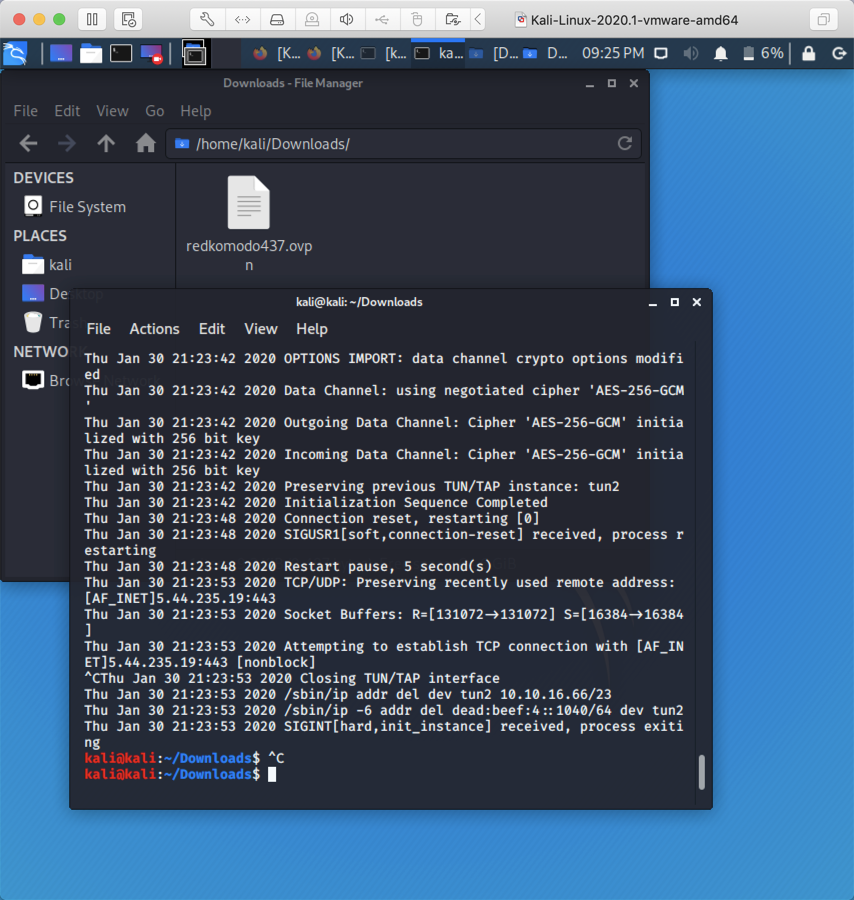 | Description | can not establish a lasting openvpn connection with kali linux 2020.1. please advise.. see images. I try to connect and it tries to establish, then fails.. | ||||