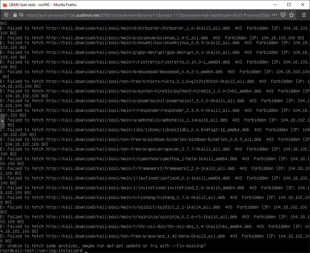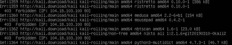 | Description | The Kali Mirror on 104.18.102.100 is not accessible. apt is not working because of forbidden access. | ||||
