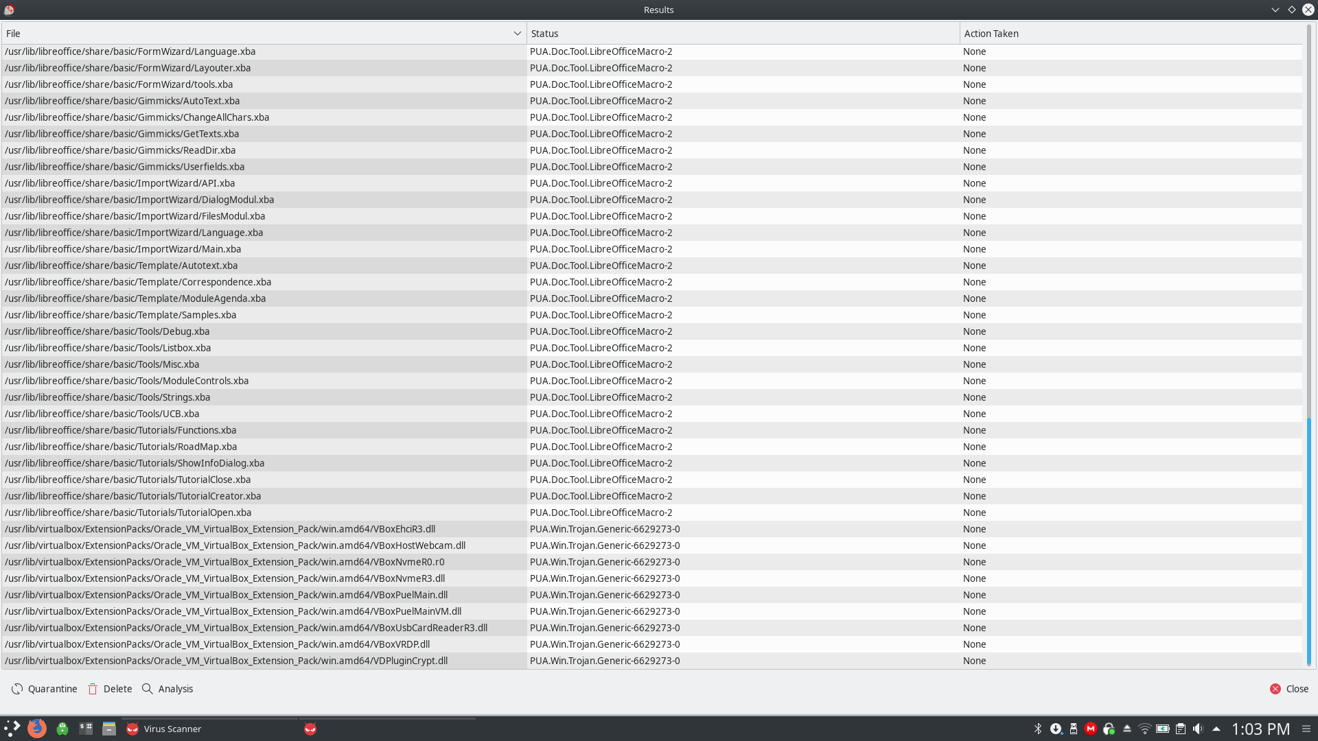 | Description | Installed to VirtualBox, have not updated yet. Ran ClamAV shows this report. | ||||