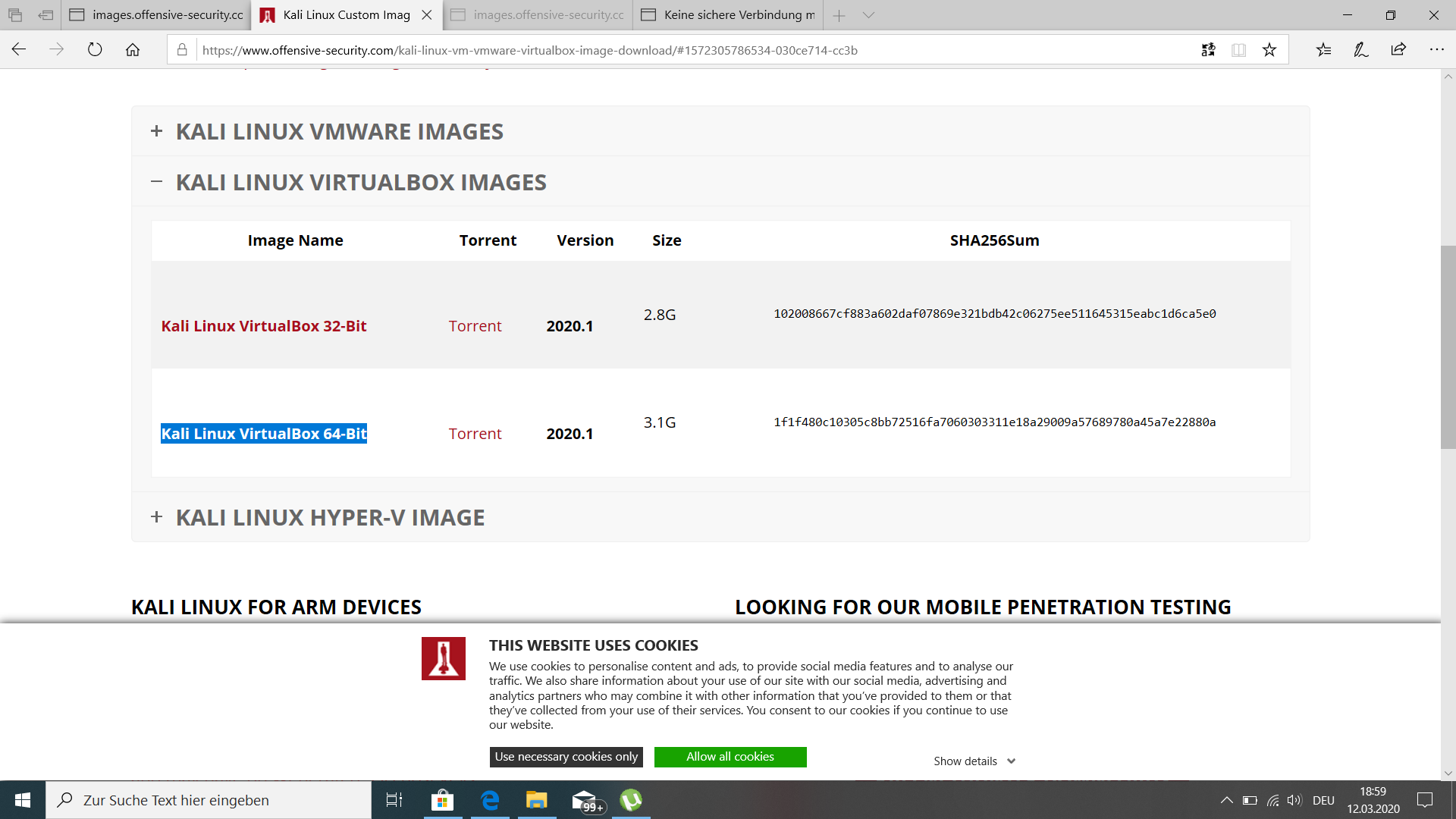 | Summary | 0006190: KALI FOR VirtualBox 64Bit Version Download not Working | ||||