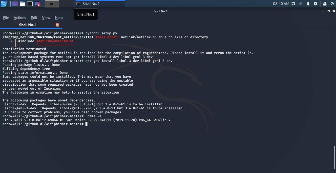 Originally, I wanted to install wifiphisher from its github home and subsequencially run into this problem. |
