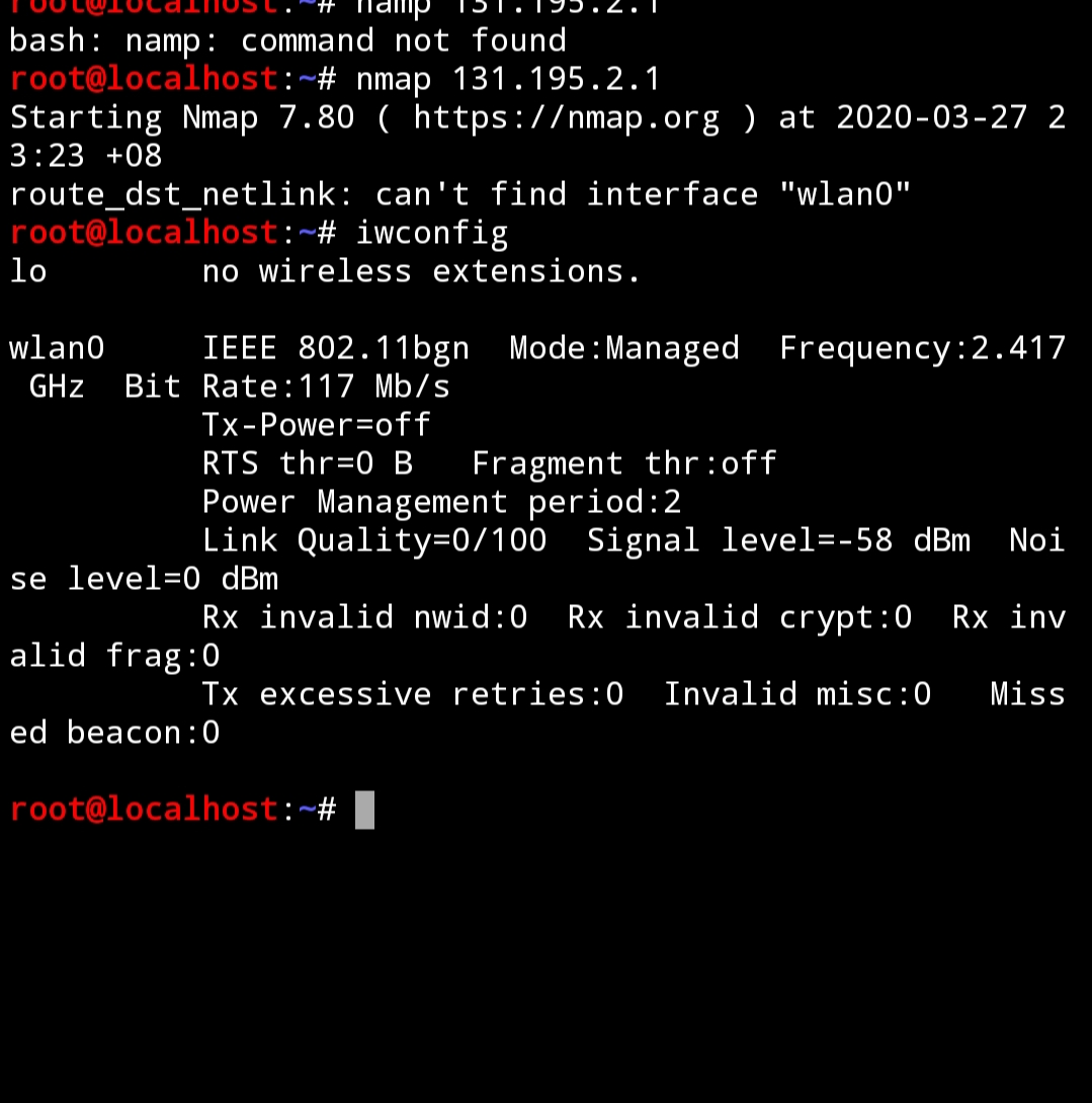 | Description | 在termunx搭建nethunter使用nmap 扫描目标端口出现不能识别网卡 | ||||