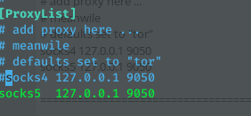 | Description | Proxychains not working in new kali 2020.1 i tried everything but still same. :( This is my proxychains config.proxychains.conf VER 3.1# HTTP, SOCKS4, SOCKS5 tunneling proxifier with DNS.The option below identifies how the ProxyList is treated.only one option should be uncommented at time,otherwise the last appearing option will be accepted# Dynamic - Each connection will be done via chained proxiesall proxies chained in the order as they appear in the listat least one proxy must be online to play in chain(dead proxies are skipped)otherwise EINTR is returned to the app# Strict - Each connection will be done via chained proxiesall proxies chained in the order as they appear in the listall proxies must be online to play in chainotherwise EINTR is returned to the app# Random - Each connection will be done via random proxy(or proxy chain, see chain_len) from the list.this option is good to test your IDS :)Make sense only if random_chain#chain_len = 2 Quiet mode (no output from library)#quiet_mode Proxy DNS requests - no leak for DNS dataproxy_dns Some timeouts in millisecondstcp_read_time_out 15000 ProxyList formattype host port [user pass](values separated by 'tab' or 'blank')# Examples:# socks5 192.168.67.78 1080 lamer secrethttp 192.168.89.3 8080 justu hiddensocks4 192.168.1.49 1080http 192.168.39.93 8080# proxy types: http, socks4, socks5( auth types supported: "basic"-http "user/pass"-socks )# add proxy here ...meanwiledefaults set to "tor"socks4 127.0.0.1 9050 =================================================== Proxy is selected to automatic. When i run return this and closed process | ||||