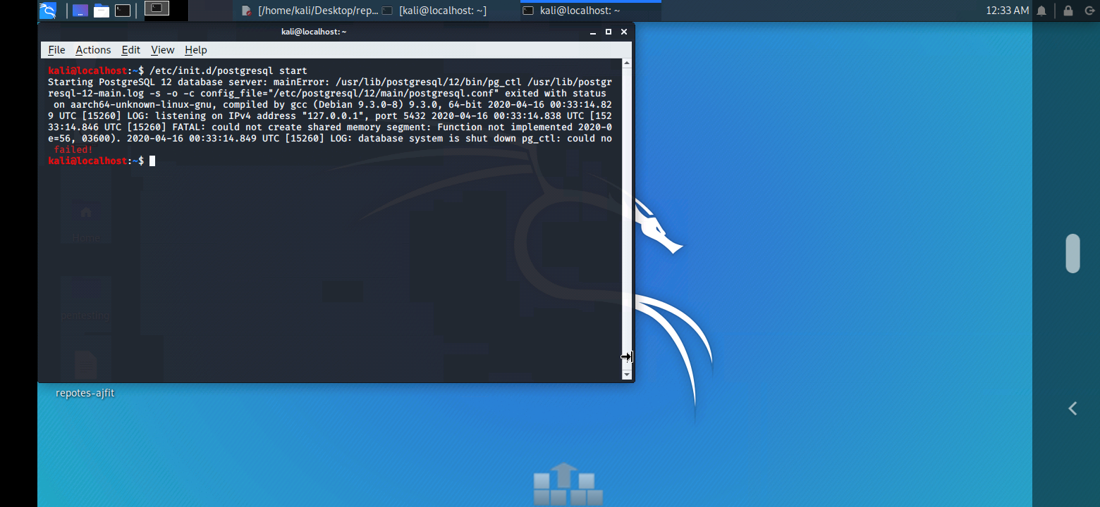 Please could you see if you are able to replicate this issue with the latest version of Kali Linux (https://www.kali.org/downloads/)?