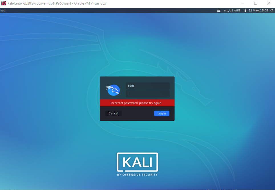 There is a problem. I install Kali (ova 64 bit) on the Oracle VM VirtualBox; the installation goes well, but asks for authorization login (root) and password (toor) are not suitable, it gives an error on the skin. Resetting the password does not give the keyboard does not work when trying to enter info in the terminal. I have an OS vin10 (64 bit) |
