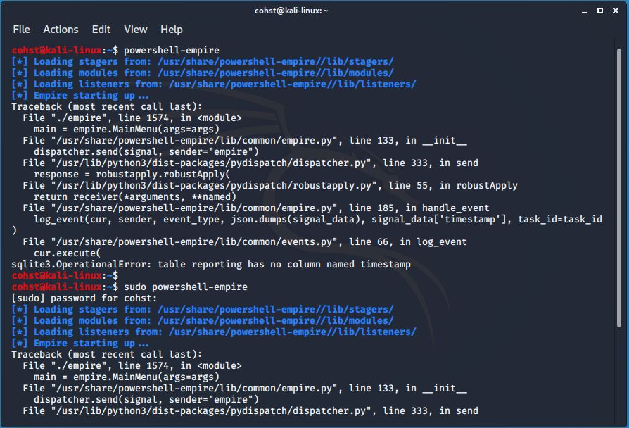 | Steps To Reproduce | Update to latest version and start powershell-empire | ||||
