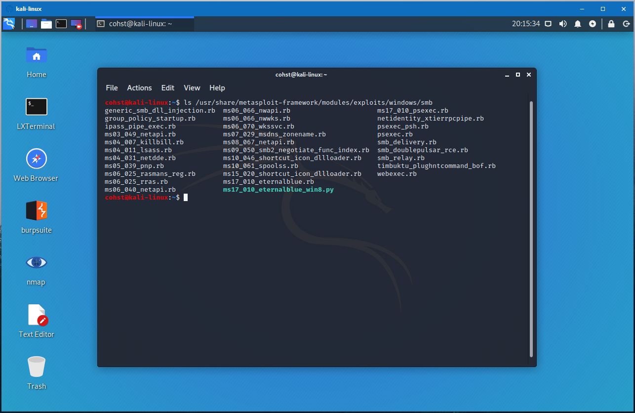 | Steps To Reproduce | Look at /usr/share/metasploit-framework/modules/exploits/windows/smb | ||||
