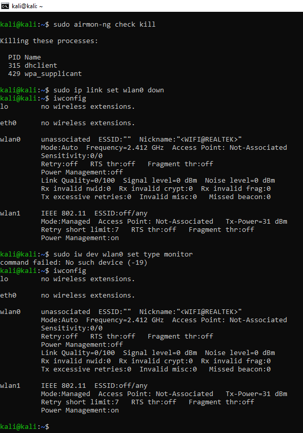 | Steps To Reproduce | sudo airmon-ng check kill | ||||