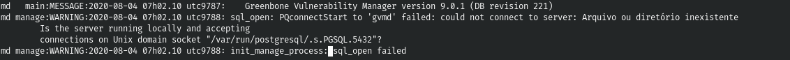 Hi Sbrun and Vanguard. Sorry for my late answer and thanks for new packages. Yes. I tested again on 04 different instances and now I have same issue that Vaguard reported on last note (see attached file). Gvm.log: connections on Unix domain socket /var/run/postgresql/.s.PGSQL.5432? and I also tried to stop postgresql completely and then let it start new by gvm-setup, but I got the same results as above and I also tried to find if this port must be somewhere set but until now I am not able to find it. Do you have idea how can we fix it? Have a nice afternoon. Alisson Lara |
