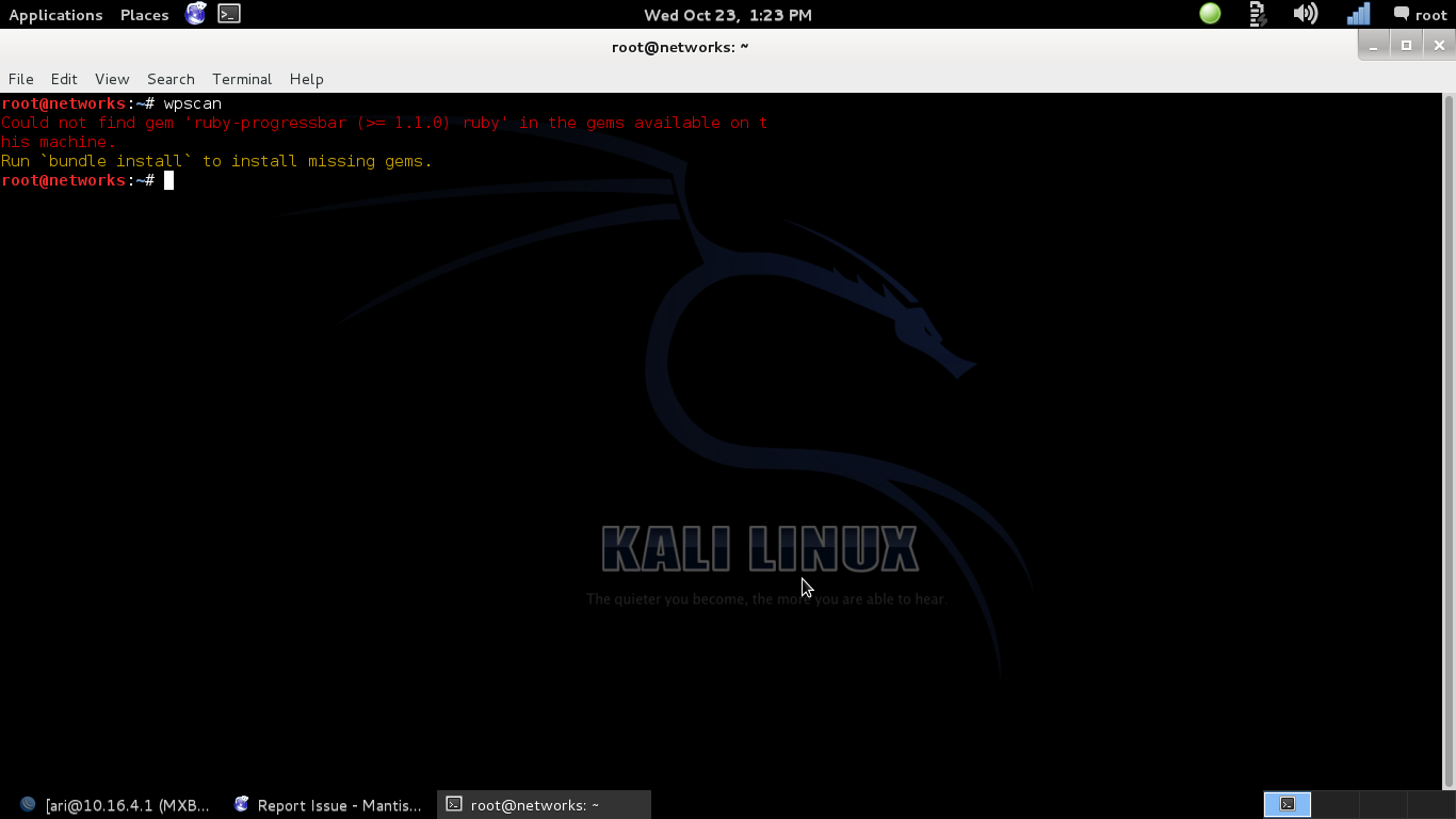 | Summary | 0000665: wpscan is not running from fresh install. | ||||