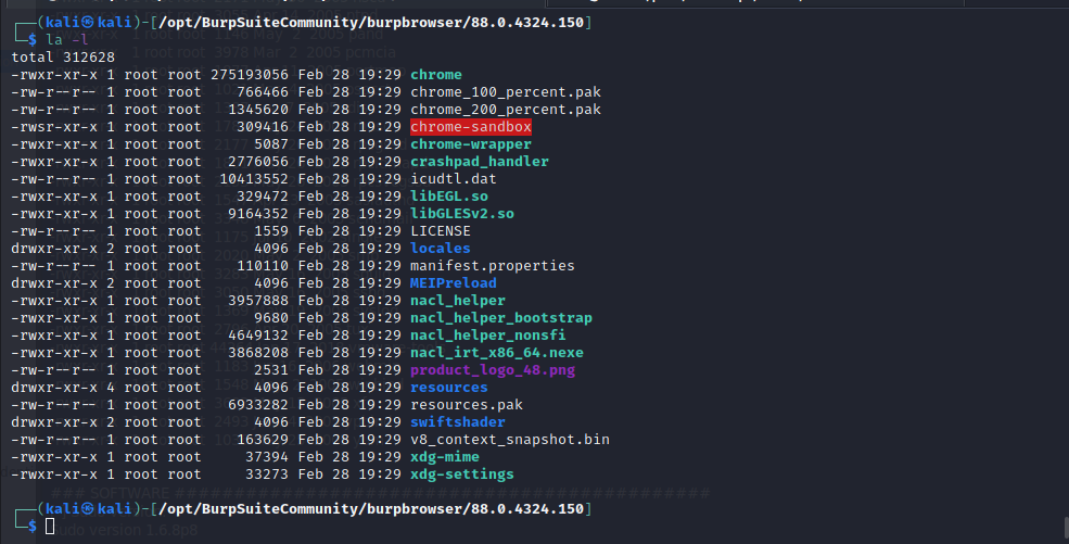 Yes, I see what you're saying. I did some testing and discovered that essentially the Kali apt package is just putting the jar file into /usr/bin. Because if I download the jar "installer" from Portswigger, I get the same behavior. On first run, it installs the burpbrowser folder to ~/.BurpSuite/burpbrowser. So in this sense it's an upstream issue with their jar installer. However, there is also a platform installer for "Linux 64-bit". When the installer is run as root, it installs by default to /opt/BurpSuiteCommunity and the browser is installed (at installation time, not first-run) to /opt/BurpSuiteCommunity/burpbrowser, and the suid bit is properly set on chrome-sandbox. See attached screenshot. You mentioned that arm64 is a concern, and I realize it's important for kali packages to be platform independent, but perhaps the .sh installer could be used instead of the jar installer? I don't know if Portswigger has any intentions of supporting other architectures or if they provide source code to distributions? In any case, maybe they would agree to install the burpbrowser in a non-user location, such as /usr/share/burpsuite or /opt/burpsuite so distributions can follow best practices if they were asked. Then the permissions could be set correctly from the beginning. |
